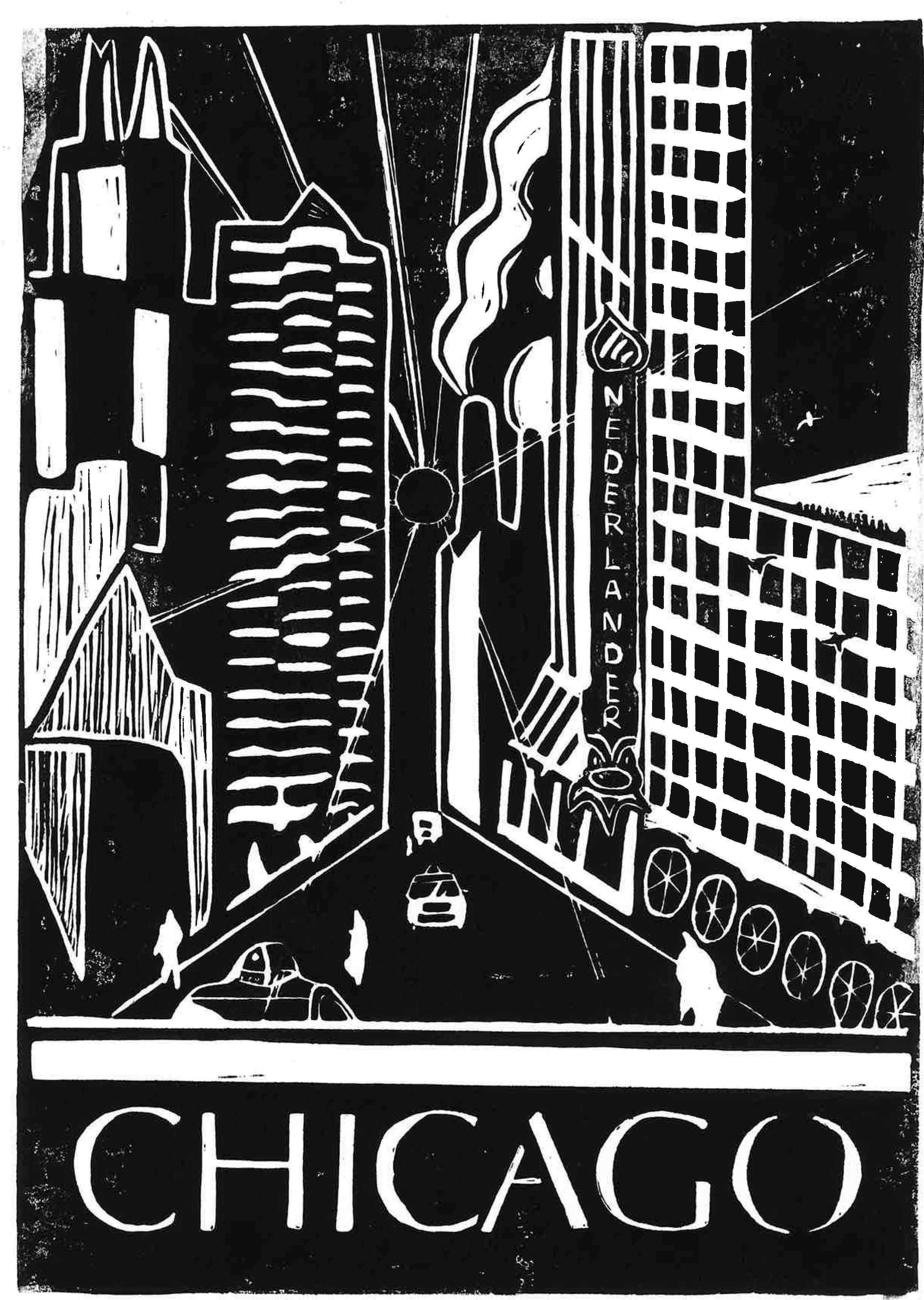 A printmaking work on the city Chicago