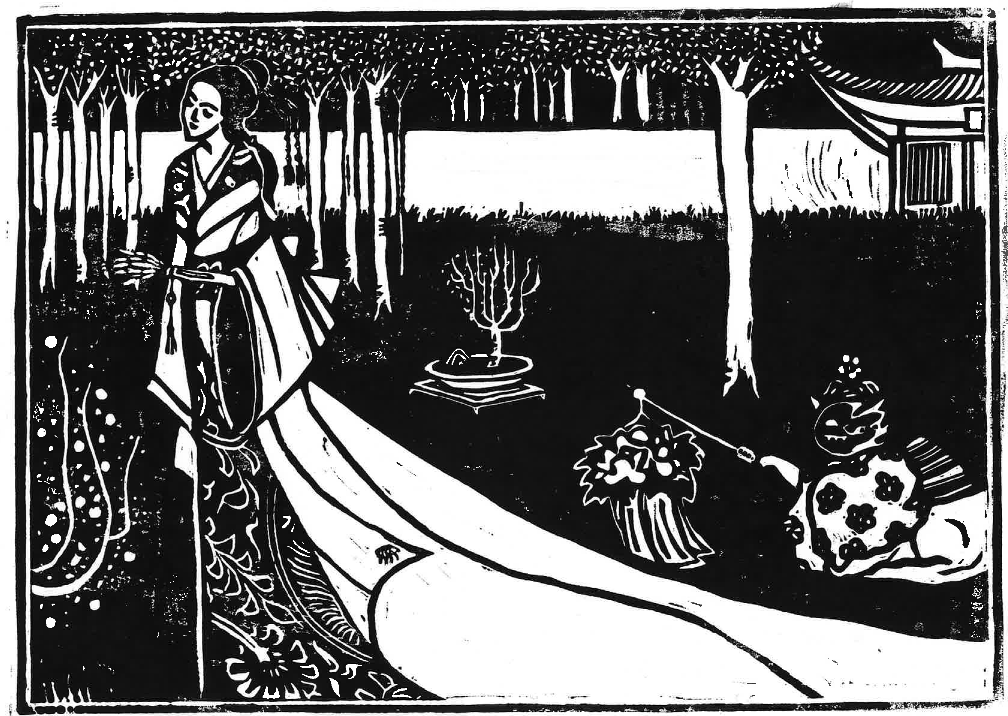 A printmaking work inspired by East Asian ghost stories